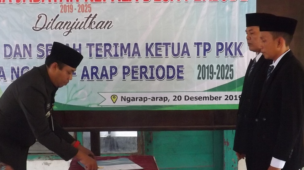 "Saya tegaskan bahwa sekarang ini Kepala Desa Ngarap-arap adalah Bapak Nurwahid, adalah milik warga masyarakat Desa Ngarap-arap, tak ada lagi pendukung siapa pun, dan kepada Kades Nurwahid untuk memberikan pelayanan kepada warga masyarakat Desa Ngarap-arap tanpa pandang bulu," tegas Camat Widodo pada kesempatannya memberikan sambutan dan pengarahan. Acara ditandai dengan penandatanganan Berita Acara Sertijab kemudian penyerahan Buku Memori Serah Terima Jabatan dari Penjabat Kepala Desa Ngarap-arap kepada Kepala Desa Ngarap-arap yang baru.