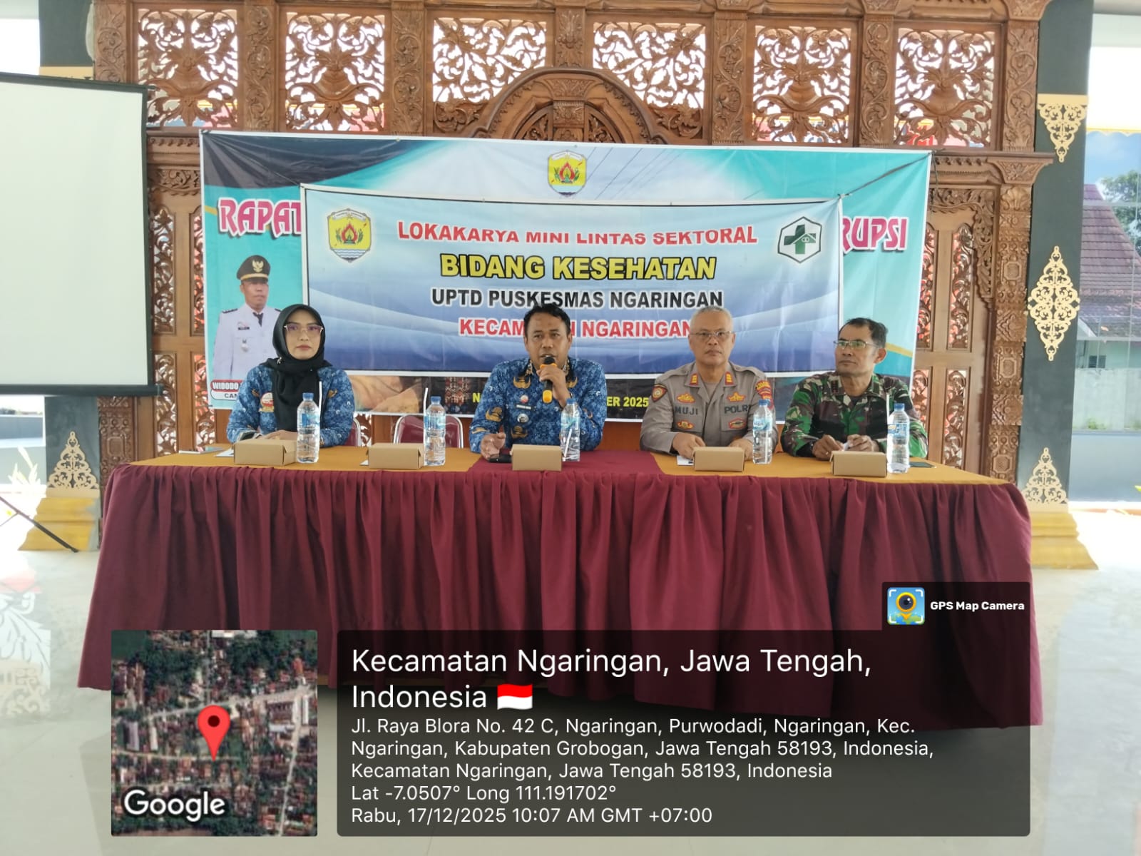 Rabu, tanggal 17 Desember, telah dilaksanakan kegiatan Loka Karya Mini Lintas Sektoral Bidang Kesehatan yang diselenggarakan oleh UPTD Puskesmas Ngaringan. Kegiatan ini bertempat di Pendopo Kecamatan Ngaringan dan berlangsung dengan tertib, lancar, serta penuh partisipasi dari seluruh undangan yang hadir.